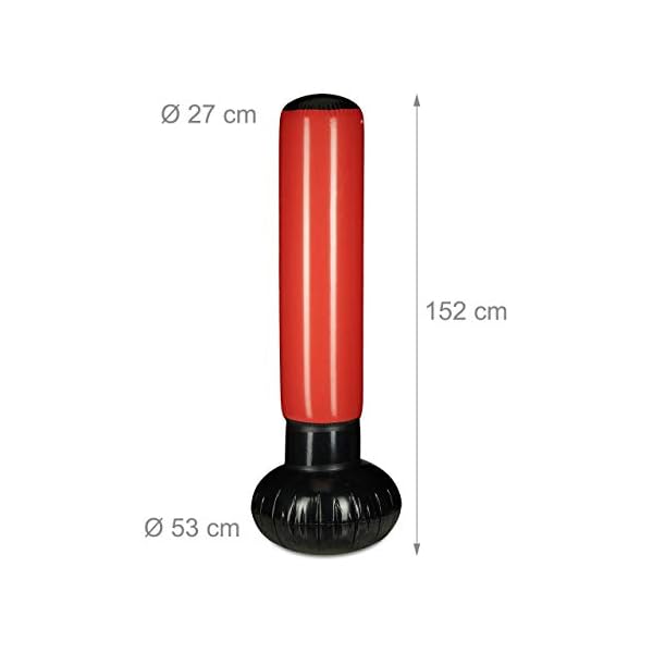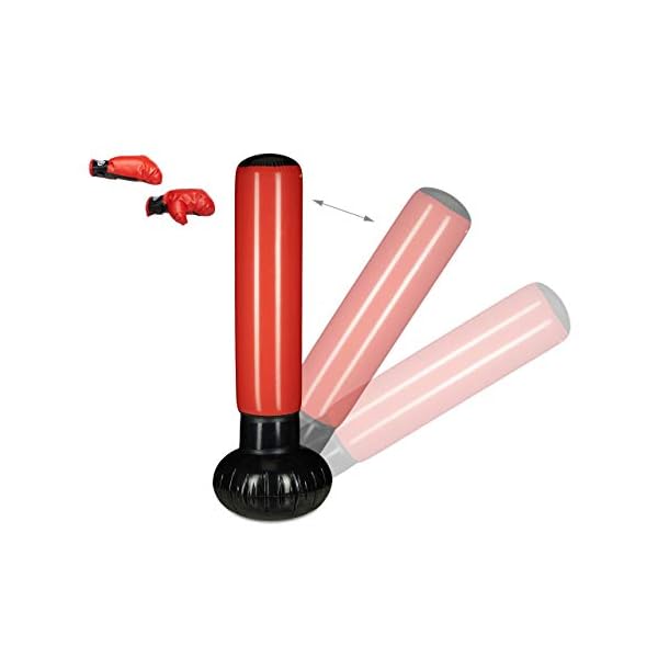 Relaxdays Niños Saco Boxeo, Punching Ball Hinchable, Boxing Bag Infantil, Juguete Antiestrés, 160 cm, PVC, Negro-Rojo
