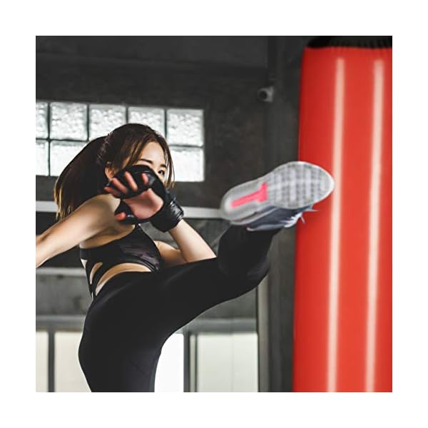 Detalles: saco para boxear de pvc de unos 152 x 53 cm; pesa 500 g; rojo y negro